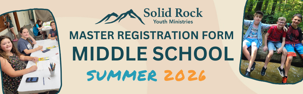 Media Permission: Solid Rock occasionally takes pictures to inform the community what we are doing through Facebook, Instagram, our website, the newspaper, etc. You may opt out of this if you would prefer. If you would like to give Solid Rock permission to use pictures and/or videos of your child in publications, news releases, online, and in other communications related to the mission of Solid Rock Youth Ministries, click "Yes" below. If you would NOT like Solid Rock to publish pictures of your child, click "No" below.